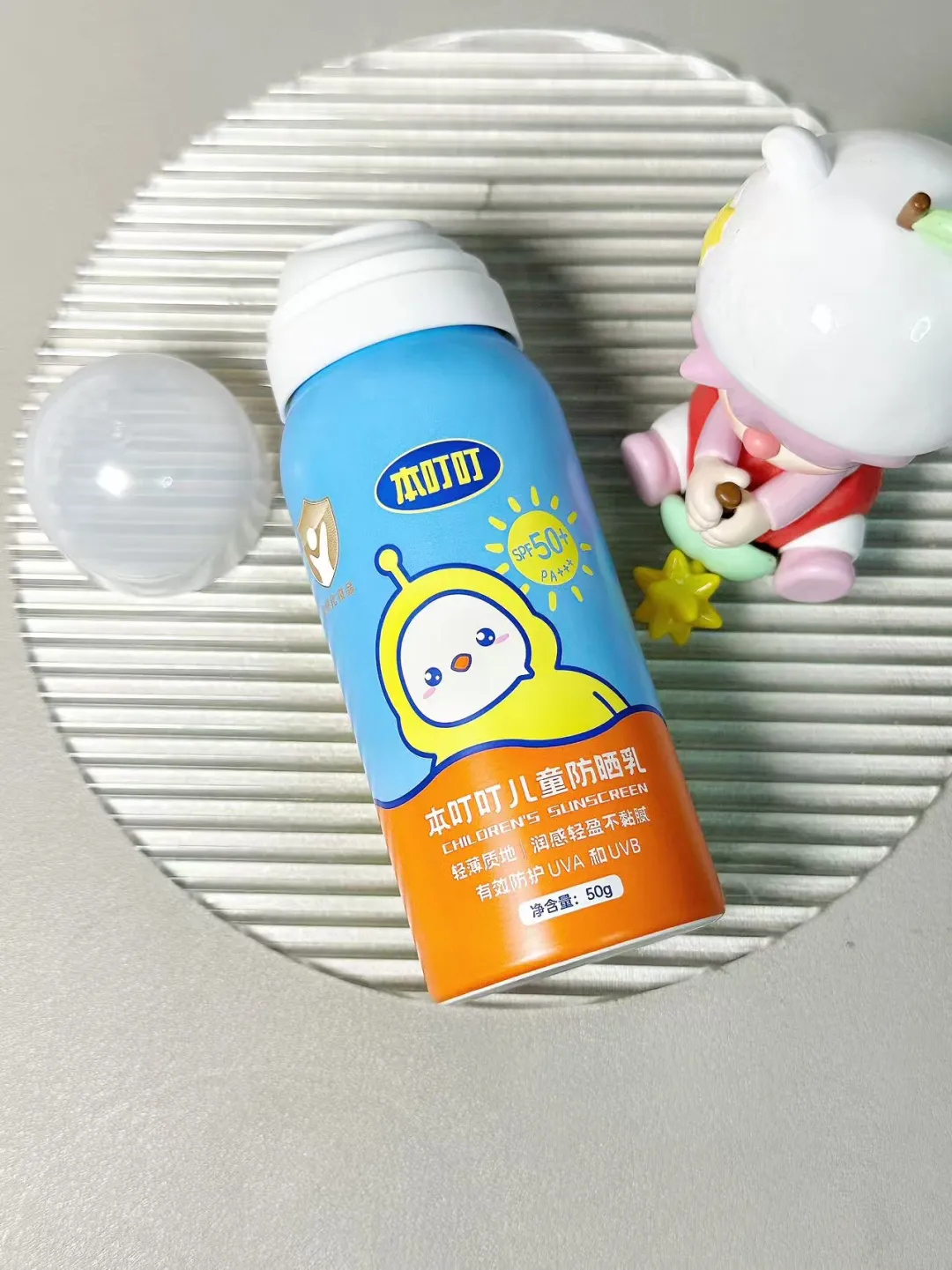 → 可爱包装:卡通太阳图案+小玩偶陪伴,让防晒变成游戏